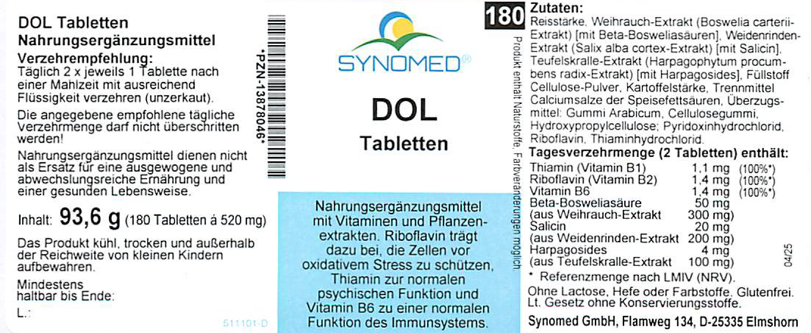 | Zutaten: | Reisstärke, Weihrauch-Extrakt (Boswelia carterii-Extrakt) [mit Beta-Bosweliasäure], Weidenrinden-Extrakt (Salix alba cortex-Extrakt)[mit Salicin], Teufelskralle-Extrakt (Harpagophytum procumbens radix-Extrakt) [mit Harpagosides], Füllstoff Cellulose-Pulver, Kartoffelstärke, Trennmittel Calciumsalze der Speisefettsäuren, Pyridoxinhydrochlorid, Überzugsmittel: Gummi Arabicum, Cellulosegummi, Hydroxypropylcellulose, Riboflavin, Thiaminhydrochlorid |
